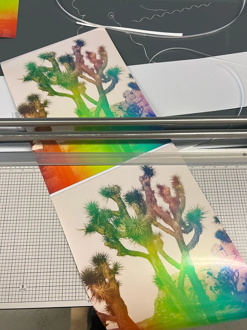 A sheet of Forest Altar prints in progress on Metallic Photo Paper with a sliver of Tectonics peeking out.